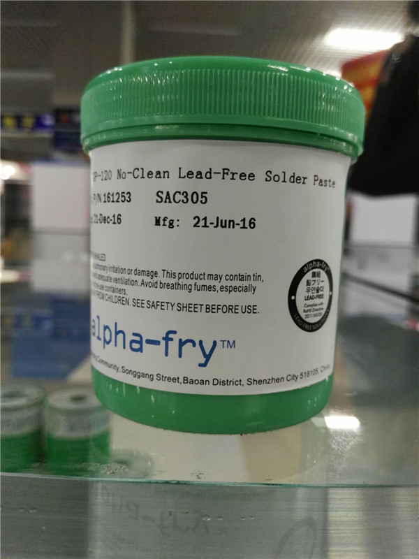 产品型号:EGP-130 SAC305/EGP-120 SAC305产品规格:SAC305(96.5%Sn/3.0%Ag/0.5%Cu)和 SAC0307(99%Sn/0.3%Ag/0.7%Cu产品说明:Alpha-Fry EGP-130 焊膏的助焊剂系统是针对精密间距无铅应用而特别配方的免清洗 REL0 类产品,在连续表面贴装印刷时可保证稳定的粘性和触变性。产品配方包括 SAC305(96.5%Sn/3.0%Ag/0.5%Cu)和 SAC0307(99%Sn/0.3%Ag/0.7%Cu)等合金配方。该产品还具有优异的耐高温预热性、抗超精密间距焊盘溶解以及降低焊球缺陷等属性应用:印刷 - 刮刀压力:0.15 - 0.25 kg/cm- 挤压速度 : 10-50 mm/s- 焊膏滚动直径:1.5-2.0 cm- 分离速度:1–20 mm/s- 刮刀提升高度:10-15 mm* 网 板厚度: 0.10mm - 0.15 mm (4 - 6 mil )距 ,间距 0.4 - 0.5 mm (0.016" - 0.020"